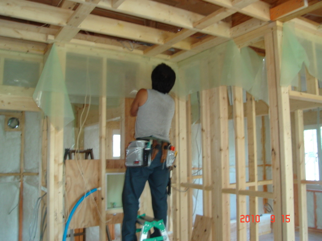 このあとはダンタイト(ビニール)を貼って家の気密を取って行きます。