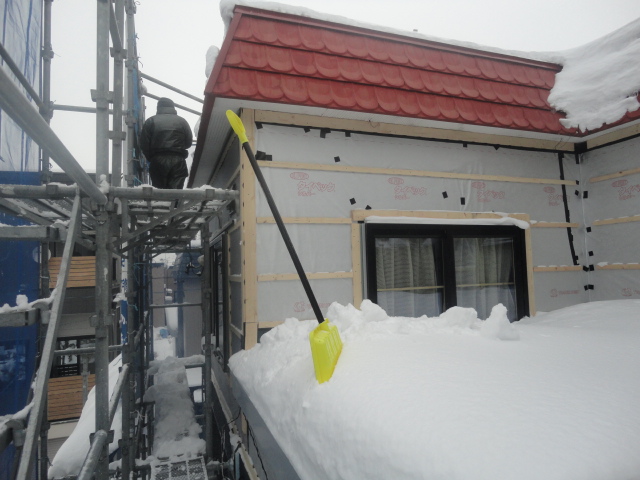本日2階部分の建て方作業、なんとかこのまま雪が待ってくれる事を