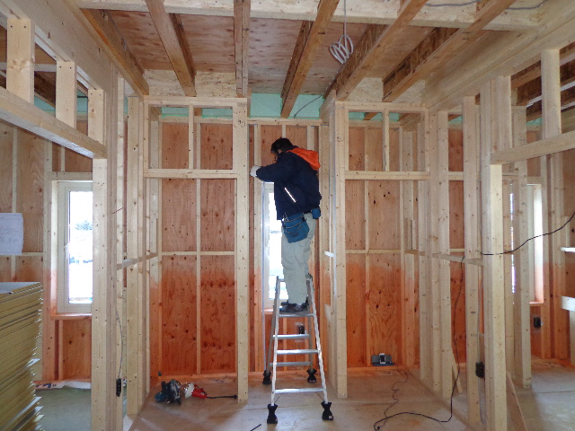 本日、内部配管、明日のブローイングに向けて下地造り準備を行ないました。