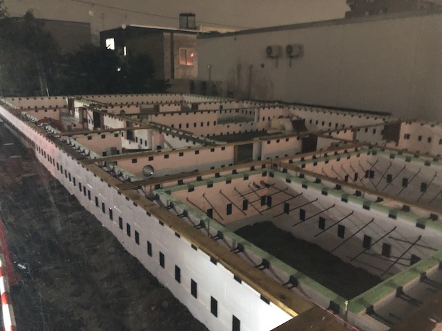 本日、既存キッチン解体、業務用キッチン配置の為の作業