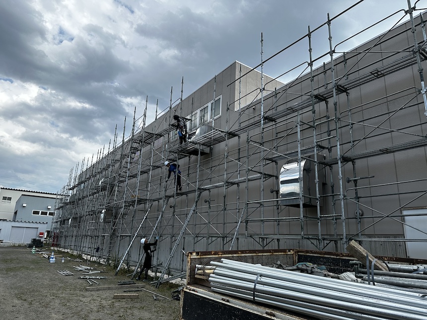 今日の外気温は32℃、足場設置の作業をしてましたが危険な温度