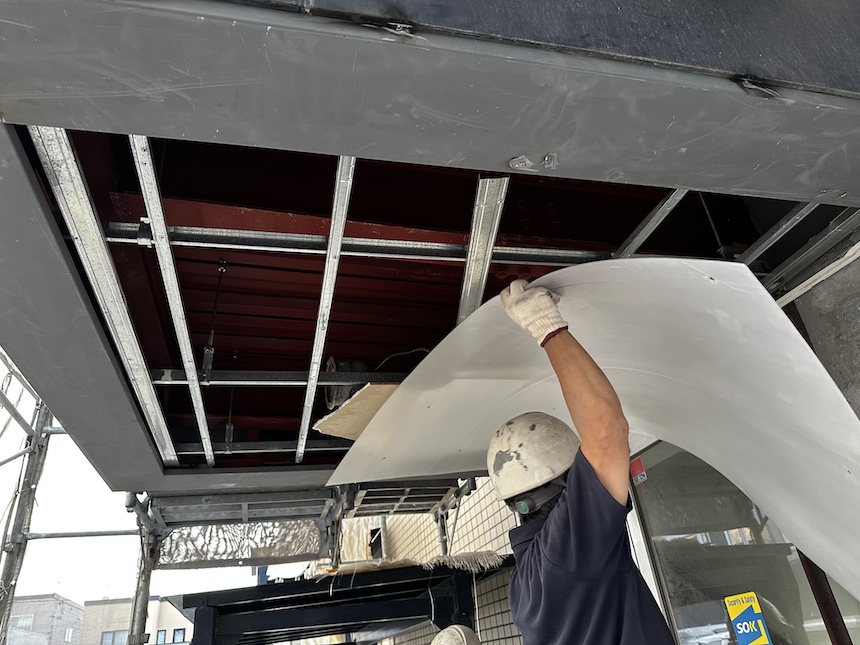 本日鋼板貼り替え、重ね貼り作業