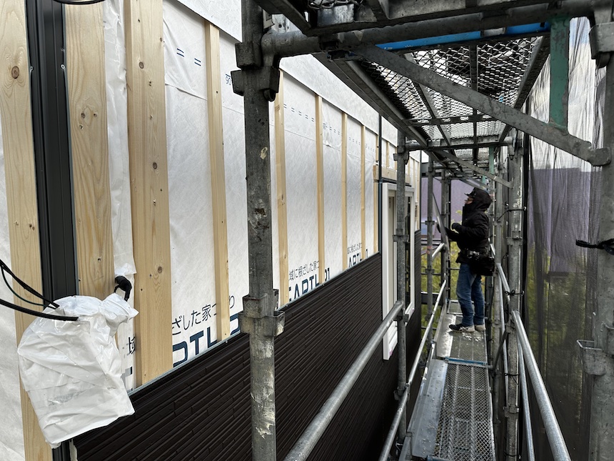 外部サイディングやっと貼れてます