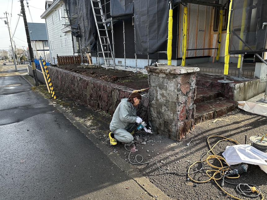 内部造作大詰め作業、外部サイディングと塀の石剥がし